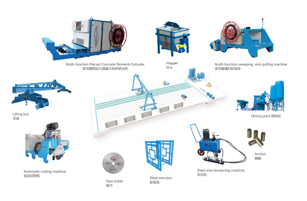 GLY多功能預應力混凝土構件擠出機,采用重力擠出原理,可換模具生產(chǎn)各種規(guī)格空心板混凝土預制構件。本機更換模具只需10分鐘,生產(chǎn)出的構件表面光滑,幾何尺寸準確,密實度高,是構件廠更新?lián)Q代的首選產(chǎn)品。